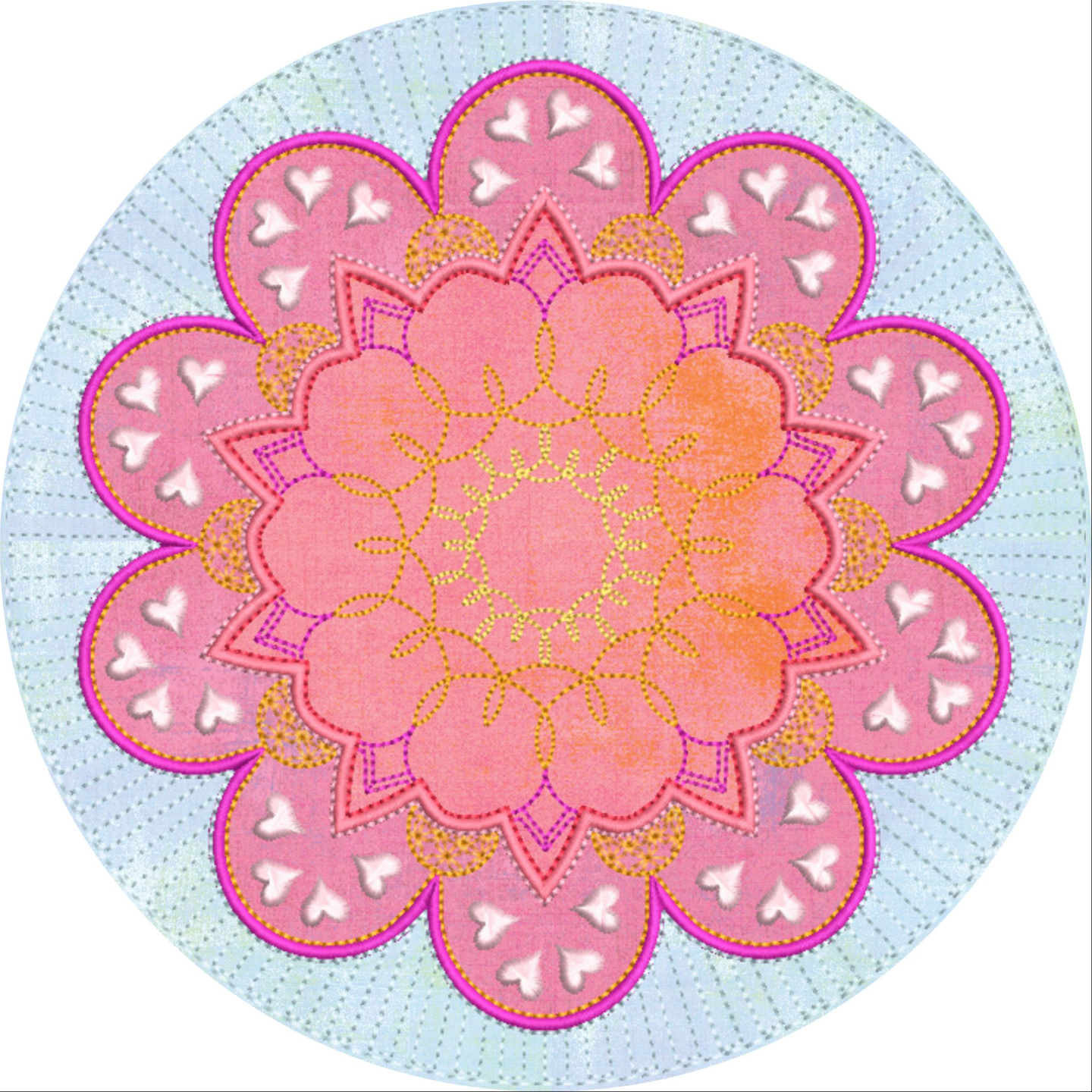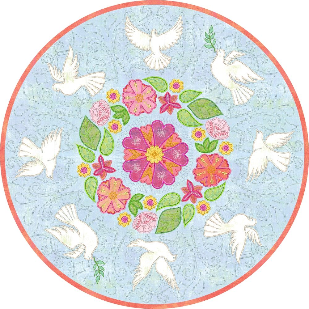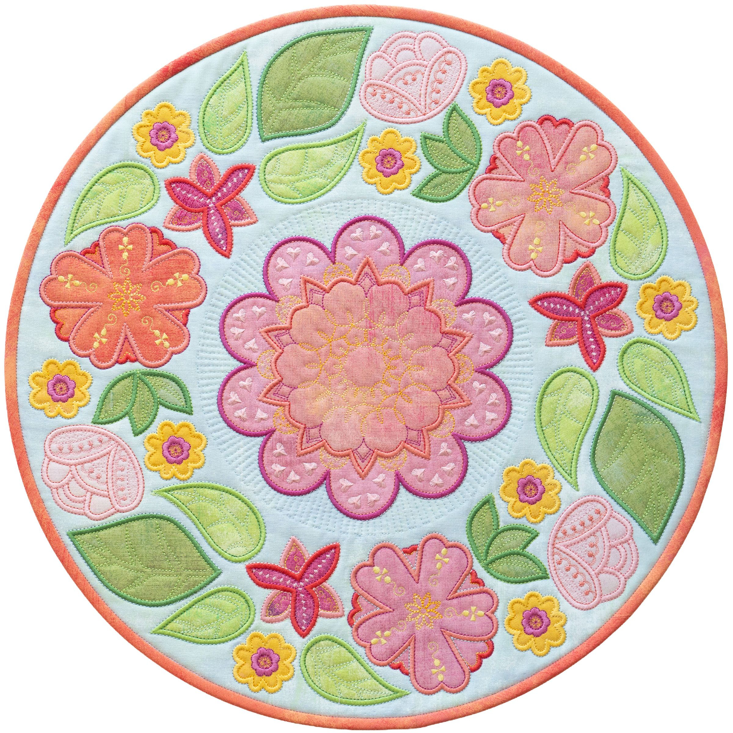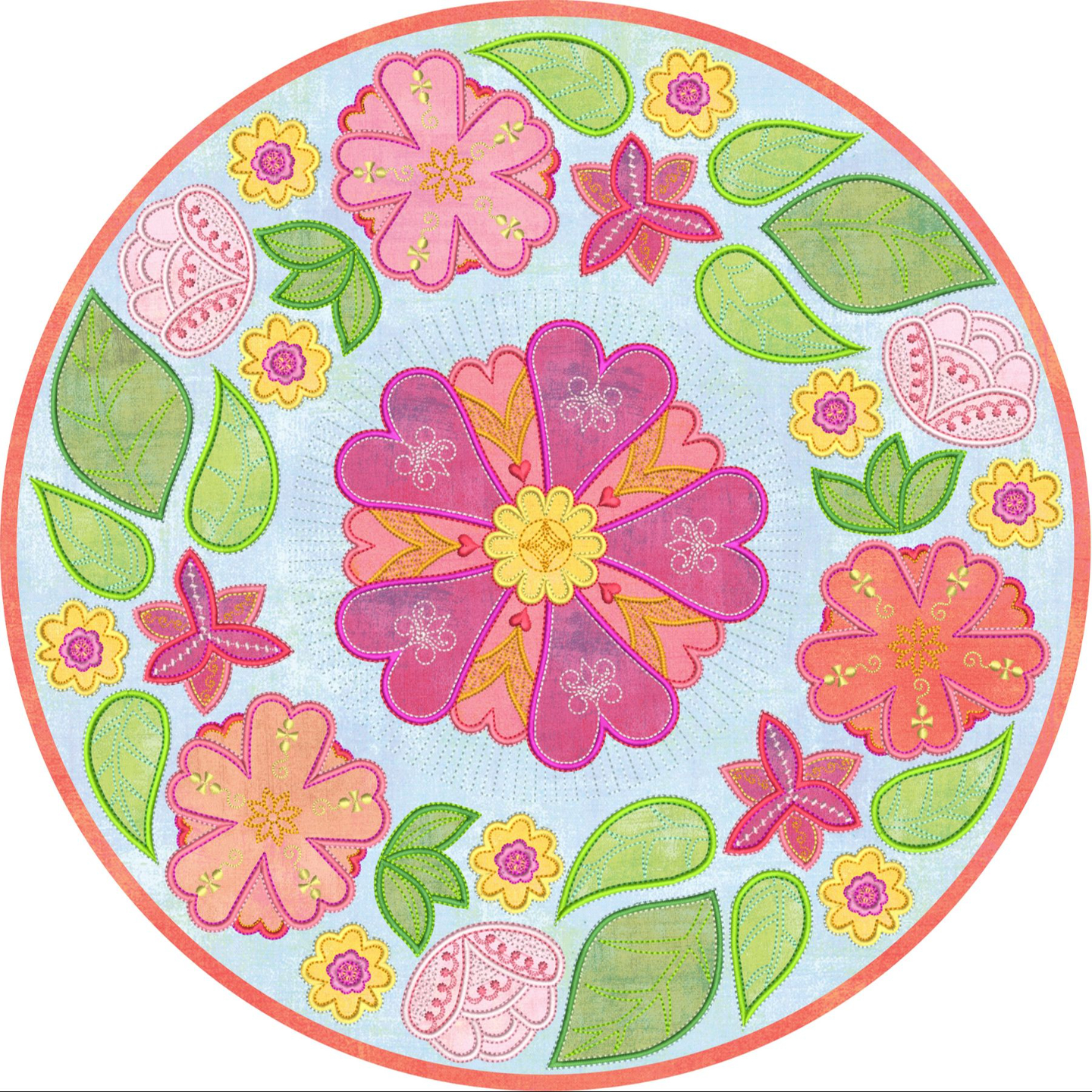 A stunning 16" circular quilt (16.5" with binding) that brings a spring garden into your home. Perfect for table toppers, wall hangings, or gifting to someone you love.