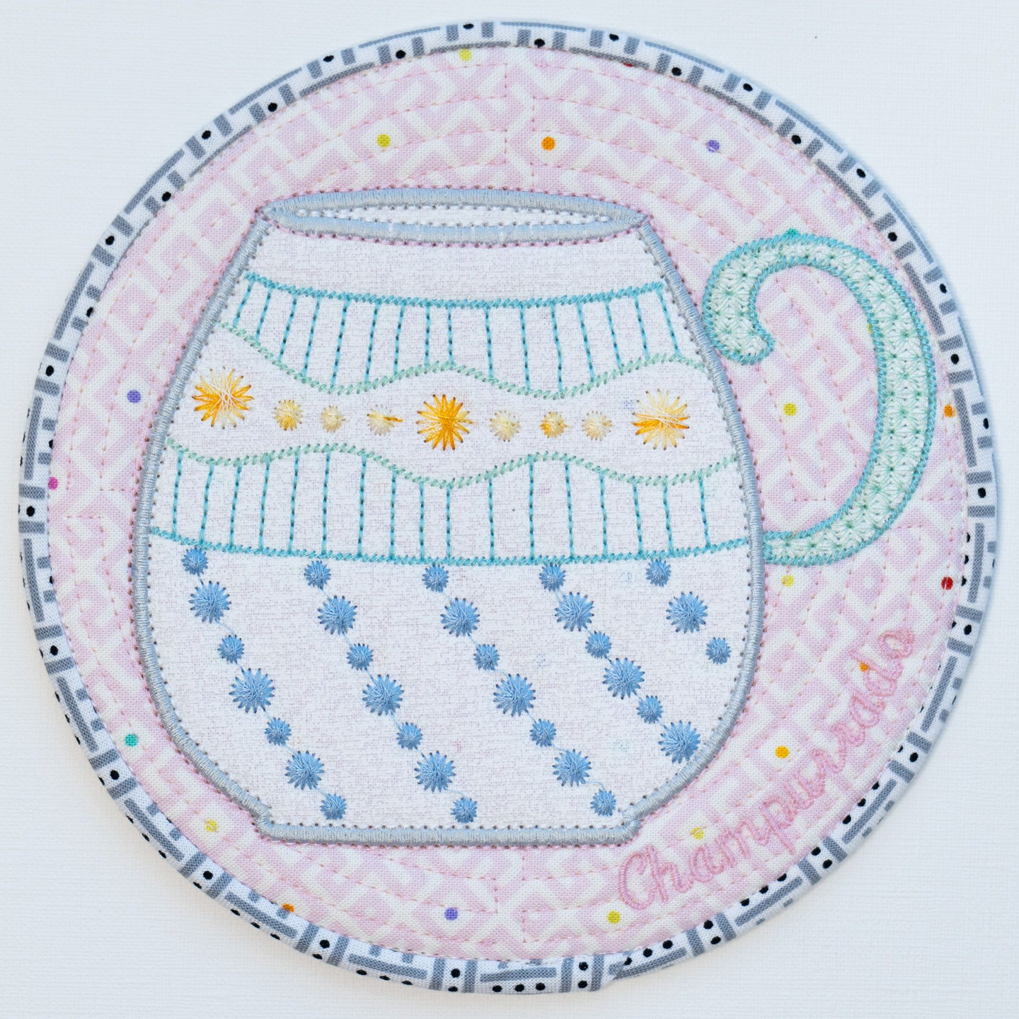 Like all the projects, you choose which cups to feature. Create a runner with all twelve cups for maximum variety, or choose a themed collection (all tea cups, or cups from a specific region).